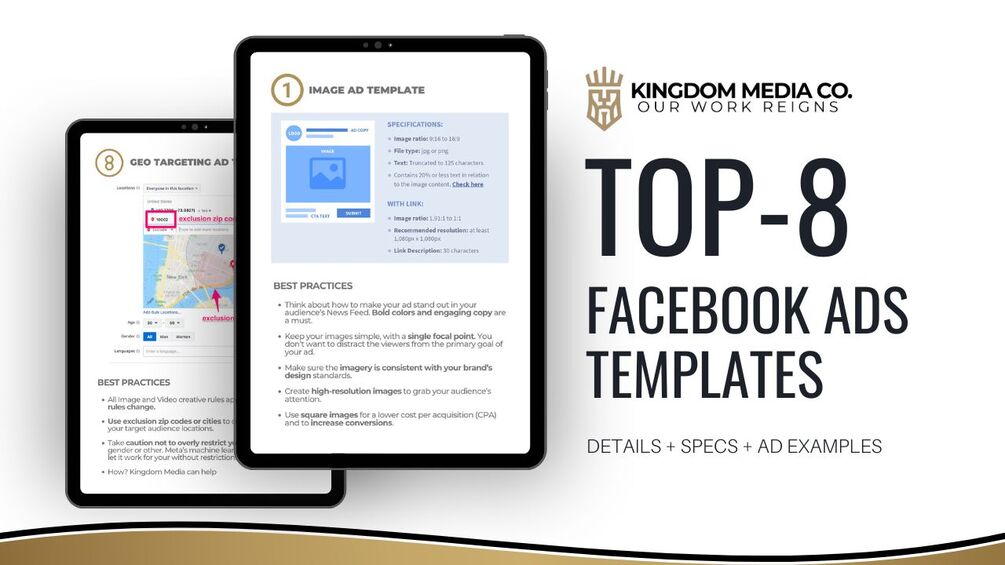 That’s why Kingdom Media Company put together these templates to help you CREATE BETTER FACEBOOK ADS that are optimized specifically for the platform and consistent with your brand.